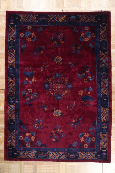 9 x 11 - Red Antique Chinese Art Deco Rug - 79534