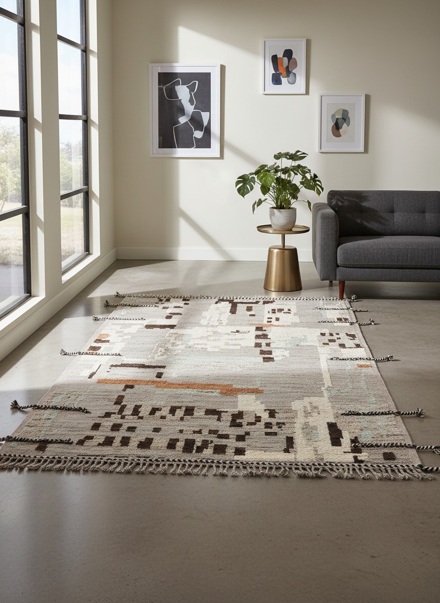 10 x 13 - Ivory Organic Bauhaus Moroccan Rug - 79529